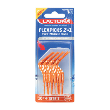 De lactona flexpicks 2in1 m/l bieden een effectieve en comfortabele reiniging van de interdentale ruimtes. Dankzij de dubbele kop, met een rechte kant voor de tanden en een gebogen kant voor de kiezen, bereikt u moeiteloos alle hoeken van uw gebit. De flexibele, driehoekige 'haartjes' verwijderen tandplak doeltreffend en stimuleren de doorbloeding van het tandvlees, wat essentieel is voor een gezonde mondhygiëne.