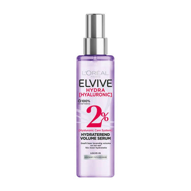 De l'oréal paris elvive hydra hyaluronic hydraterend volume serum is een leave-in behandeling geformuleerd met een 2% hyaluronic care system, ontworpen om de haarvezel intens te hydrateren. Dit serum revitaliseert droog en futloos haar zonder het te verzwaren, waardoor het haar veerkrachtiger en voller aanvoelt. Het resultaat is een zichtbare toename van volume en een gezonde glans, ideaal voor dagelijks gebruik.