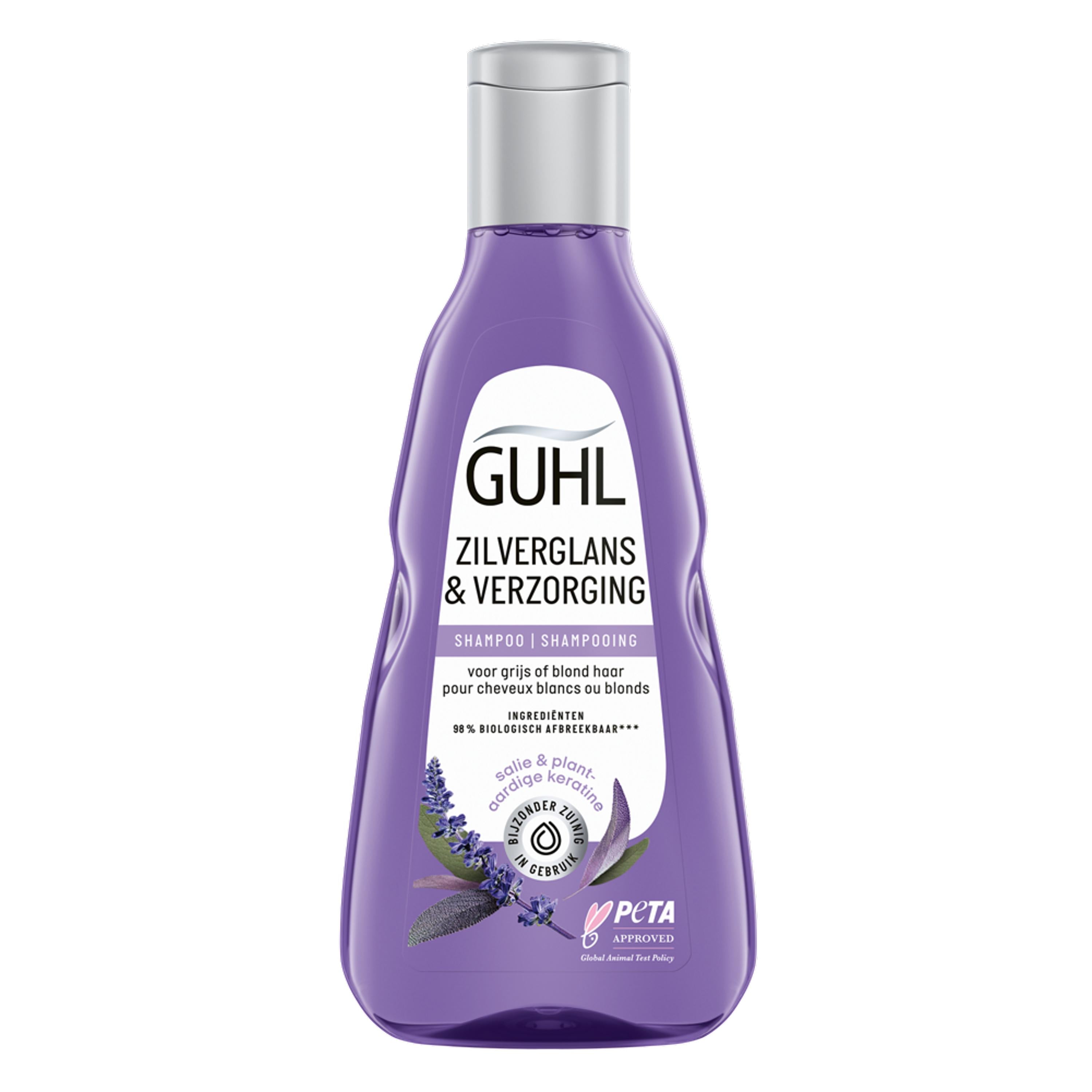 De guhl zilvershampoo is dermatologisch getest, siliconenvrij en bestaat voor 92% uit ingrediënten van natuurlijke oorsprong, met een biologische afbreekbaarheid tot 98%. Deze shampoo reinigt niet alleen effectief, maar versterkt ook de haarstructuur van de wortel tot de punt, zonder het haar te verzwaren. Het resultaat is een voelbare souplesse, een verbeterde glans en een gezonde uitstraling.