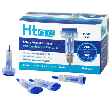 De Ht One veiligheidslancet flex 28G biedt een doordachte oplossing voor bloedafname, waarbij veiligheid en flexibiliteit hand in hand gaan, de drievoudig instelbare prikdiepte (1.3, 1.8 en 2.3mm) maakt het mogelijk om het benodigde bloedvolume nauwkeurig te verkrijgen, geschikt voor diverse patiëntengroepen, inclusief neonaten, kinderen en volwassenen, minimaliseert het facetgeslepen naaldpunt met siliconencoating pijn en optimaliseert de huidpenetratie, dit resulteert in een comfortabelere ervaring voor de patiënt en een efficiëntere procedure voor de zorgverlener.
