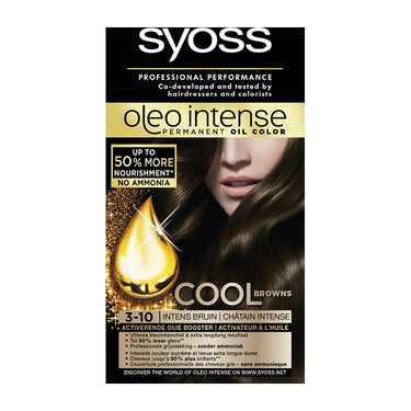 Syoss oleo intense 3-10 intens bruin is een permanente haarkleuring die gebruik maakt van een unieke olie-formule zonder ammoniak, wat resulteert in een zachte kleuring die het haar intensief verzorgt. De geavanceerde formule optimaliseert de penetratie van kleurpigmenten diep in de cortex, waardoor een rijke, langdurige kleur wordt bereikt met een volledige grijsdekking, terwijl het haar merkbaar soepeler en gezonder aanvoelt. Deze kleuring is ideaal voor consumenten die op zoek zijn naar een professioneel ogend kleurresultaat thuis, zonder de schadelijke effecten van ammoniak.