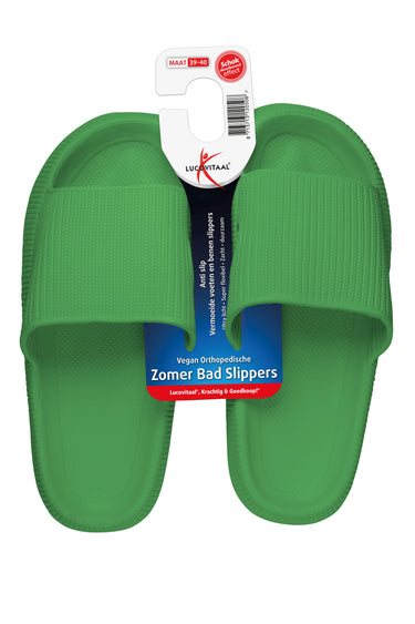 Het moderne design in een frisse groene kleur maakt deze badslippers niet alleen praktisch, maar ook stijlvol. Het duurzame materiaal is bestand tegen intensief gebruik en zorgt ervoor dat je lang plezier hebt van deze veelzijdige slippers. Perfect voor gebruik in de badkamer, het zwembad of de sauna.