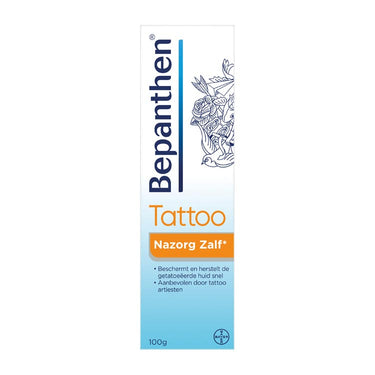 Bepanthen tattoo zalf is speciaal ontwikkeld voor de nazorg van je nieuwe tattoo. De zalf bevat een hoge concentratie dexpanthenol (pro-vitamine b5) en ondersteunt het natuurlijke herstelproces van de huid. Het vormt een ademende beschermlaag die de huid niet afsluit, waardoor het tattoo wordt beschermd tegen invloeden van buitenaf, terwijl de huid kan ademen.
