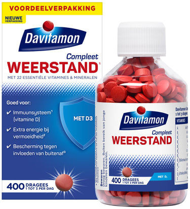 Davitamon staat al sinds 1928 bekend om haar hoogwaardige voedingssupplementen. Deze dragees zijn suikervrij, lactosevrij en glutenvrij, met veel vitamine D3. Ontdek ook de Davitamon Compleet Weerstand KauwVitamines met frambozensmaak. Verzeker jezelf en je klanten van kwaliteit en betrouwbaarheid.