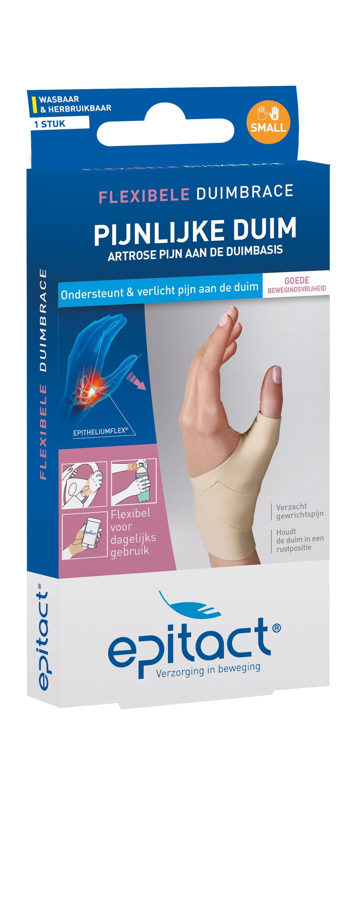 De Epitact Duim orthese dag rechts, maat S, biedt gerichte ondersteuning voor de rechterthumb tijdens dagelijkse activiteiten. Het slank ontwerp maakt het vrijwel onzichtbaar onder kleding, zodat u onbelemmerd kunt bewegen.
