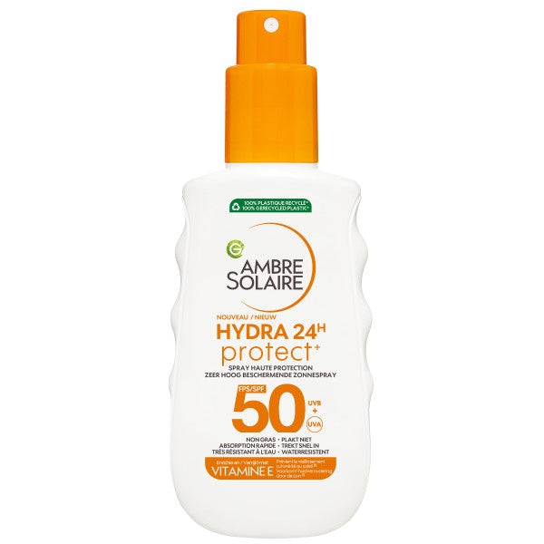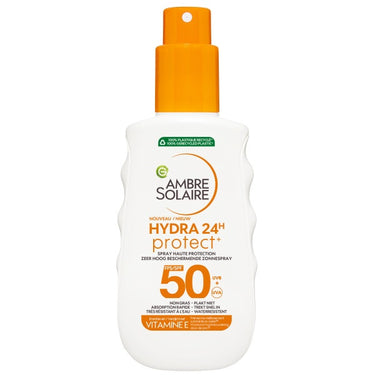 Garnier Ambre Solaire hydra 24h protect zonnebrandspray spf50 biedt een geavanceerde bescherming tegen uva- en uvb-straling, cruciaal voor het behoud van een gezonde huid en het voorkomen van vroegtijdige huidveroudering, de formule is verrijkt met vitamine e en hydraterende bestanddelen, waardoor de huid tot 24 uur gehydrateerd blijft en beschermd is tegen uitdroging door de zon, de niet-vette textuur zorgt voor een comfortabele applicatie zonder een plakkerig gevoel achter te laten.