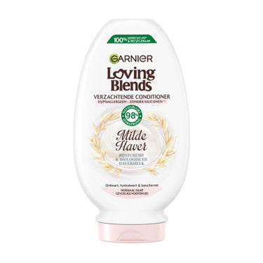 De garnier loving blends milde haver conditioner is geformuleerd met rijstcrème en biologische havermelk, een synergetische combinatie die normaal haar intensief hydrateert en beschermt. Deze conditioner, met 97% ingrediënten van natuurlijke oorsprong, ontwart het haar moeiteloos en maakt het zijdezacht, zonder het te verzwaren. Het resultaat is soepel, glanzend haar dat makkelijk in model te brengen is, en een gekalmeerde hoofdhuid.