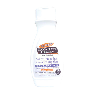 Palmer's cocoa butter formula body lotion geurvrij is speciaal geformuleerd met pure cacaoboter en vitamine e om de huid intens te hydrateren en te voeden, waardoor deze zijdezacht aanvoelt. De parfumvrije formule is ideaal voor de gevoelige huid en helpt de elasticiteit te verbeteren, terwijl het snel wordt opgenomen zonder een vettig residu achter te laten. Deze lotion is perfect voor dagelijks gebruik om droge en geïrriteerde plekken te verzachten.