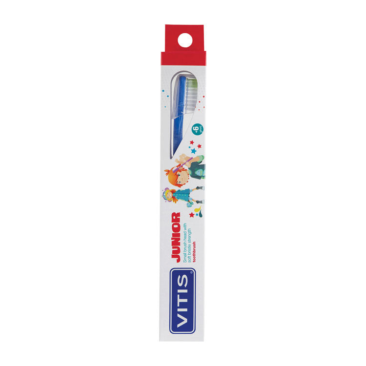 De vitis junior tandenborstel is speciaal ontworpen voor de mondhygiëne van kinderen vanaf 6 jaar. Met een kleine borstelkop en smalle hals bereikt deze tandenborstel gemakkelijk alle delen van de kindermond, waardoor een effectieve reiniging van zelfs de moeilijkst bereikbare plekken wordt gegarandeerd. De zachte tynex borstelhaartjes met afgeronde uiteinden verwijderen op milde wijze bacteriële plaque zonder het delicate tandglazuur of het gevoelige tandvlees te beschadigen.