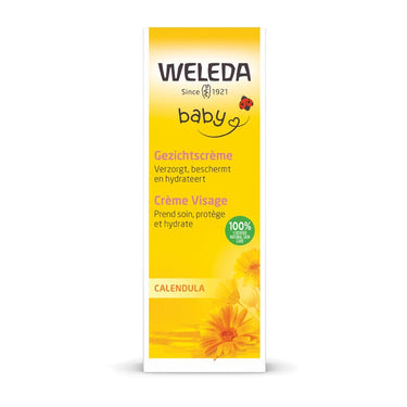 Weleda Calendula Gezichtscrème is 100% natuurlijk en speciaal ontwikkeld voor de gevoelige huid van baby's. Dankzij biologische ingrediënten zoals calendula extract en kamille biedt deze crème een milde en effectieve verzorging.